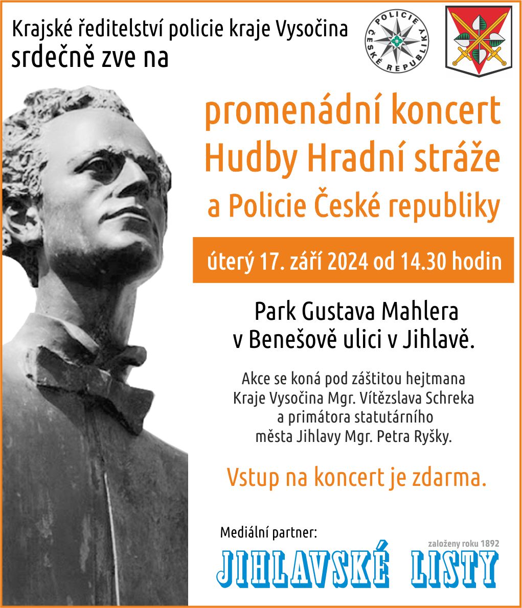 Na dopolední program bude navazovat promenádní koncert Hudby Hradní stráže a Policie České republiky, který proběhne ve stejný den – 17. září 2024 od 14.30 hodin - v parku Gustava Mahlera v Jihlavě a zdarma bude přístupný pro širokou veřejnost. Záštitu nad akcí převzal primátor Jihlavy Mgr. Petr Ryška. Mediálním partnerem akce jsou Jihlavské listy.