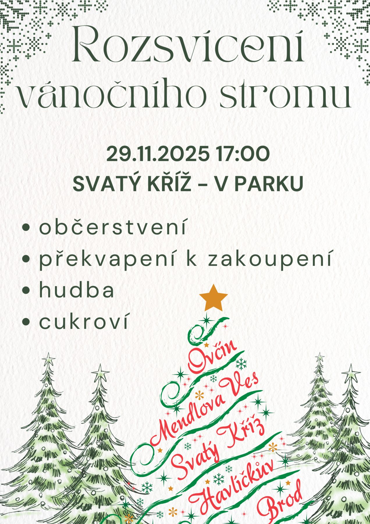 Roszvícení Vánočního stromu ve Svatém Kříži v místním parku.