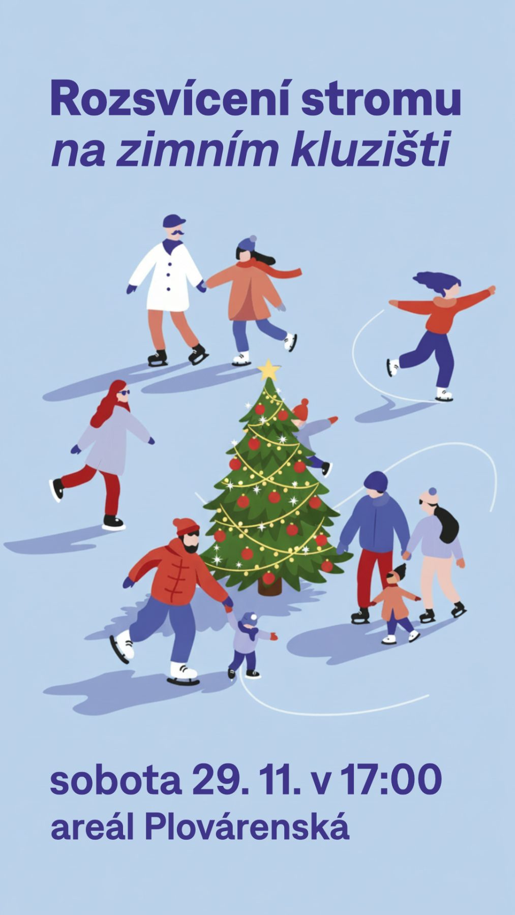 V sobotu 29. listopadu od 17:00 rozsvítíme vánoční strom na zimním kluzišti v areálu na Plovárenské.