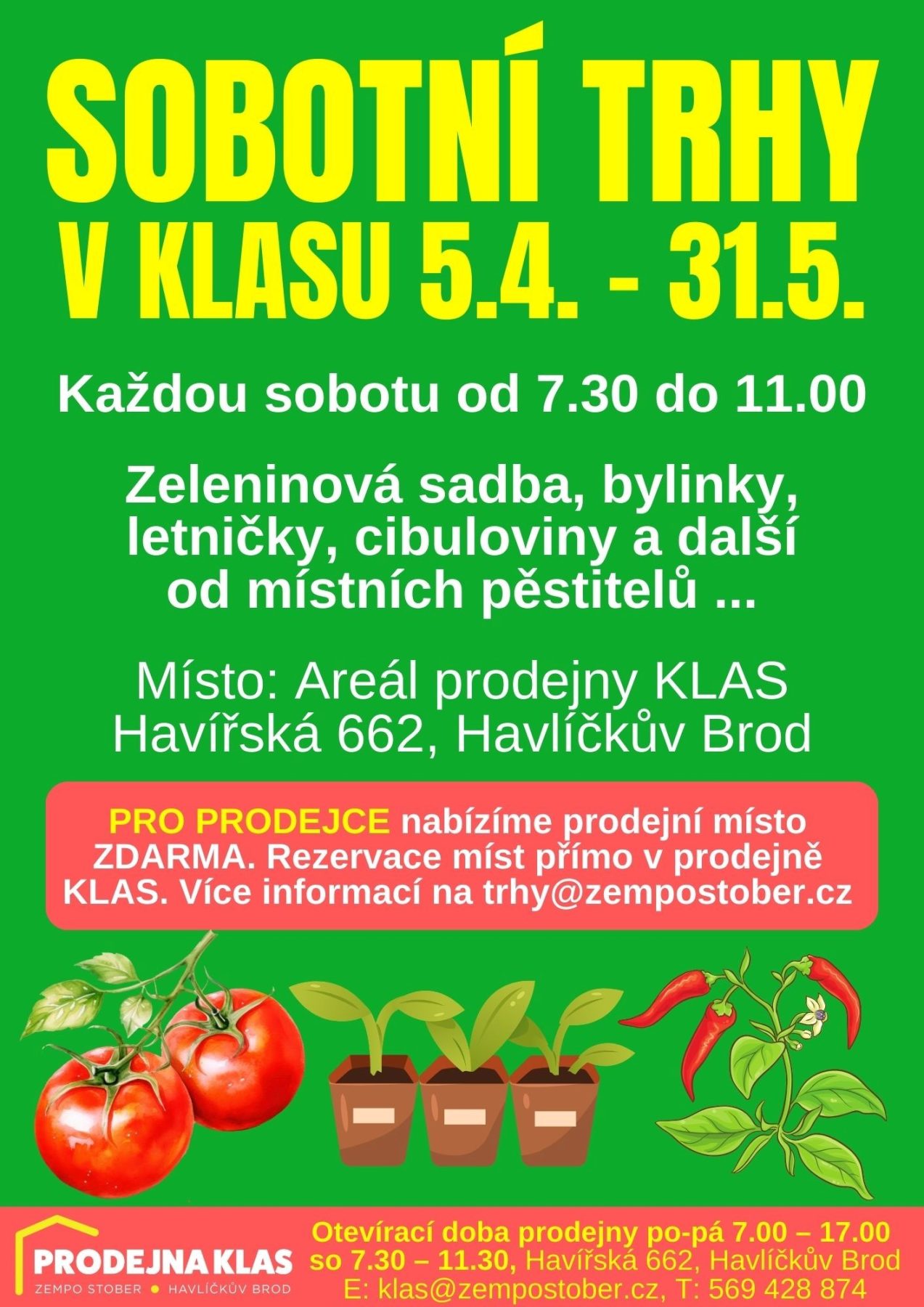 | Kde: | Areál prodejny KLAS Havlíčkův Brod |