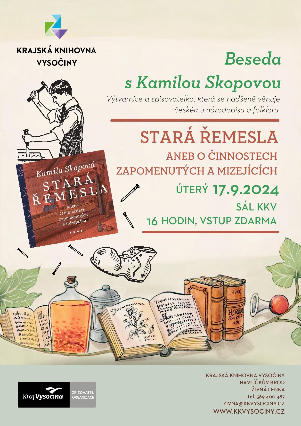 Srdečně vás zveme na besedu s výtvarnicí a spisovatelkou Kamilou Skopovou, která se nadšeně věnuje českému národopisu a folkloru.