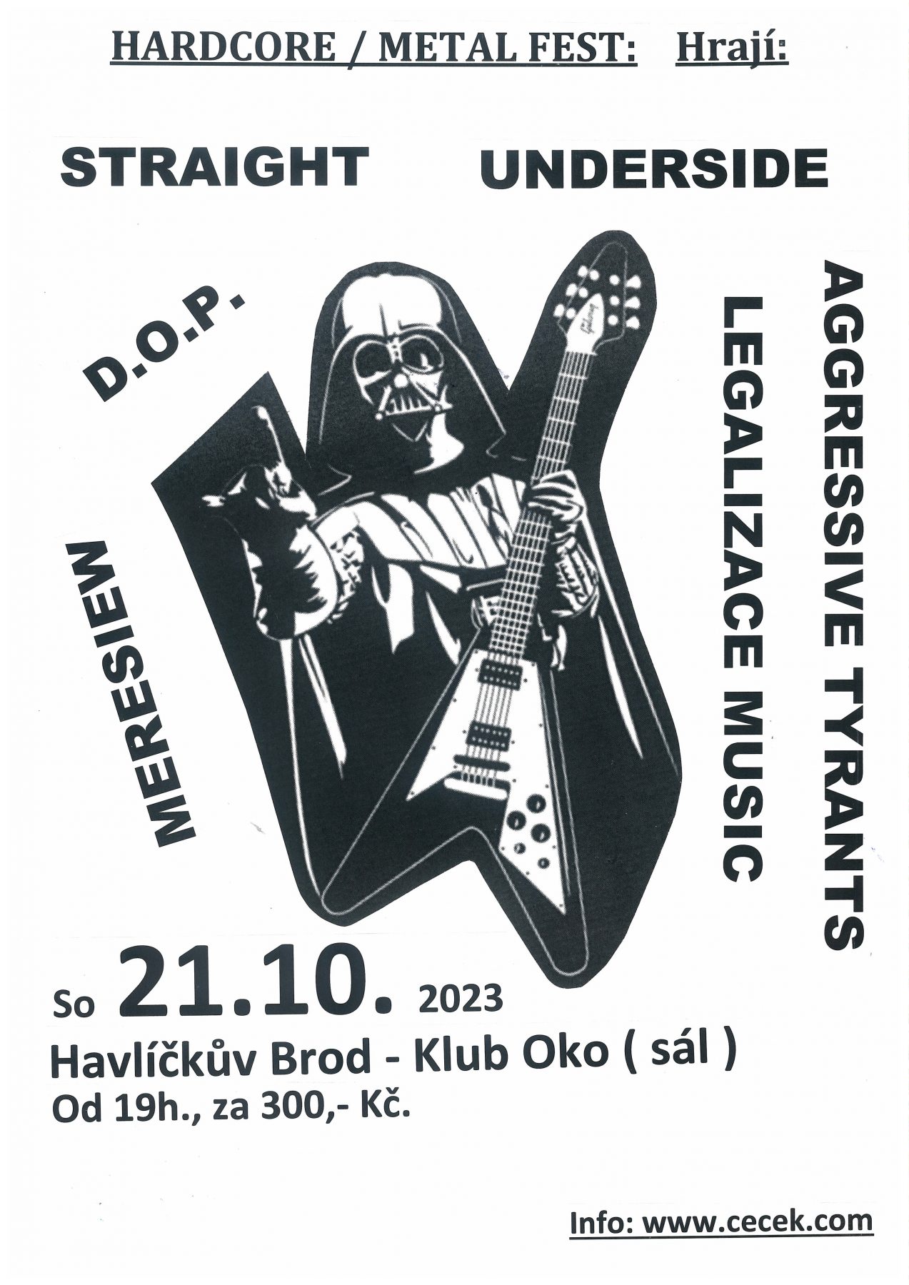 Hrají: Straight, Underside, Aggressive Tyrants, D.O.P., Meresiew, Legalizace Music. Vstup: 300,- Kč. ( jen na místě ).
