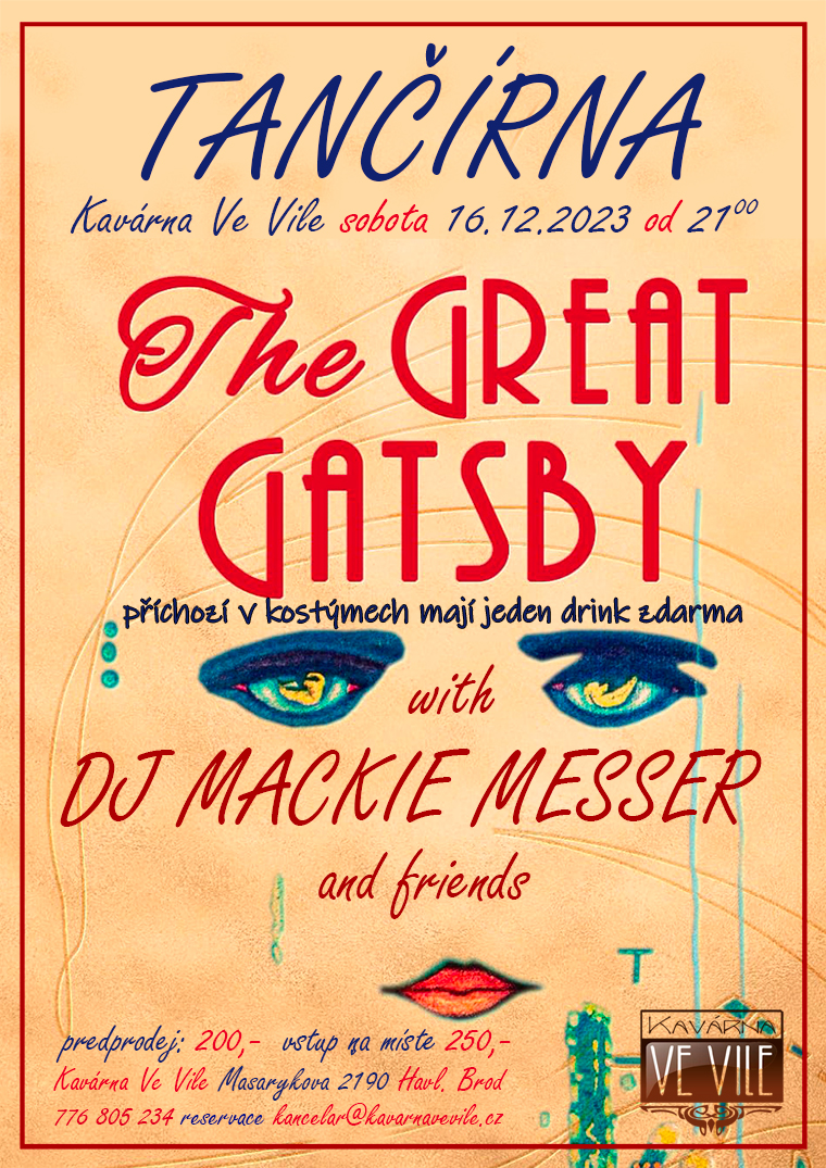 Srdečně Vás zveme na další tančírnu v kostýmech (ale i bez nich).Budeme bavit ve stylu románu a filmu THE GREAT GATSBY (tedy ve VELKÉM STYLU).