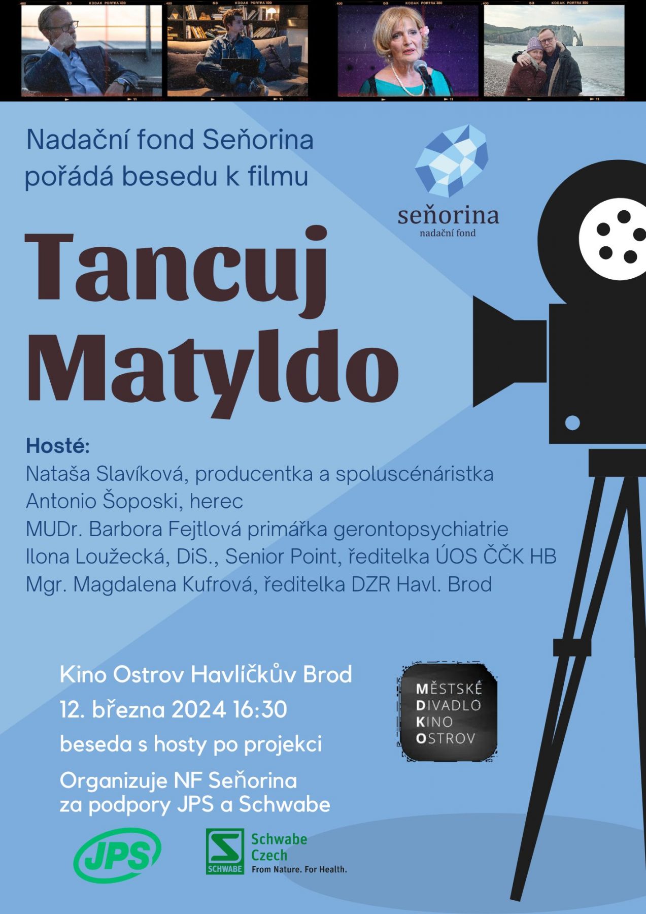 Spolu s tvůrci filmu Tancuj Matyldo vyjíždíme do regionů, kde ve vybraných městech proběhne po promítání filmu beseda s tvůrci a s odborníky na téma Alzheimerova nemoc.