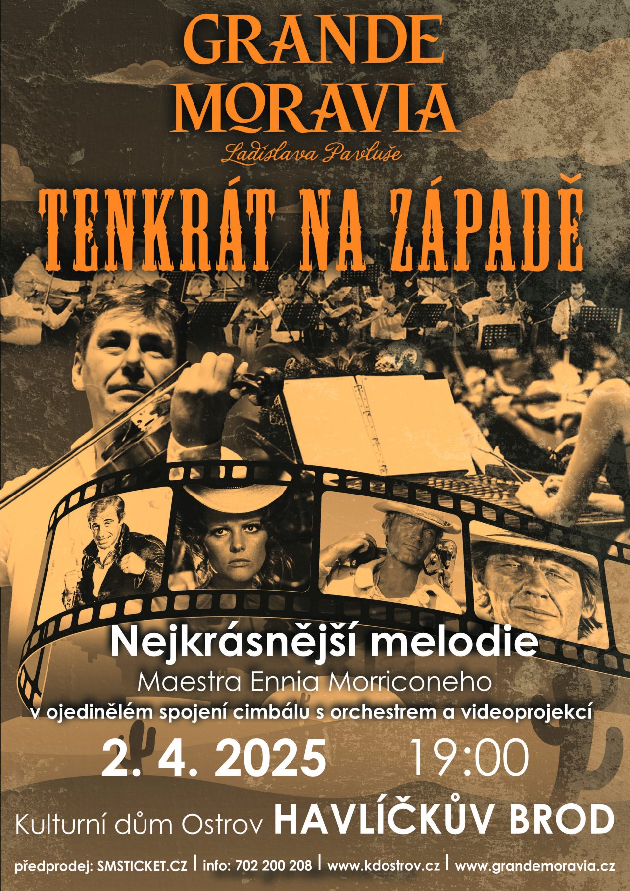 Dokonale vybroušený program nejlákavějších filmových melodií Ennia Morriconeho hraje znamenitý orchestr GRANDE MORAVIA Ladislava Pavluše.