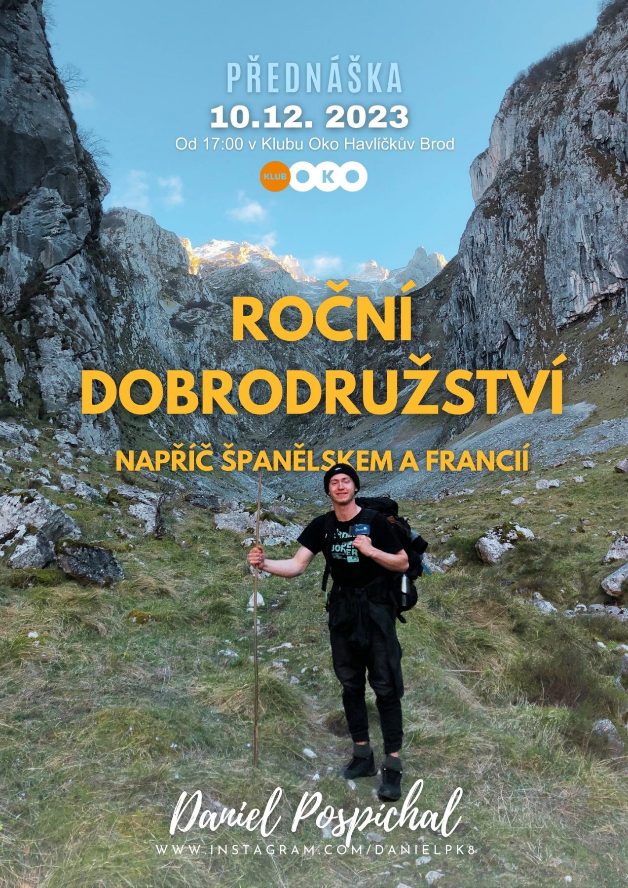 "Přijďte si poslechnout tenhle příběh. Jak si vydělávat na cestách? Kolik mě celá cesta stála? Jaký je můj největší zážitek? Jaký byl ten největší fuck-up? Překračování hranic v období covidu? Jakou práci jsi dělal ve Španělské Malaze? A spoustu dalších témat.." Daniel Pospíchal