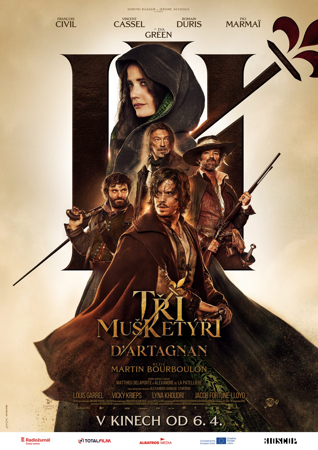 Stručný děj: V království rozděleném náboženskými válkami a pod hrozbou britské invaze, hrstka mužů a žen zkříží meče a spojí svůj osud s osudem Francie… Temperamentní mladý gaskoněc d‘Artagnan, neohrožení a věrní královští mušketýři Athos, Porthos a Aramis, křehká Constance, ďábelsky prohnaný kardinál z Richelieu či krásná a tajemná Milady de Winter jsou hlavními protagonisty nesmrtelného vyprávění o odvaze, lásce a cti. Výpravné zpracování legendárního románu Alexandra Dumase přichází v napjatě očekávaném epickém velkofilmu.
