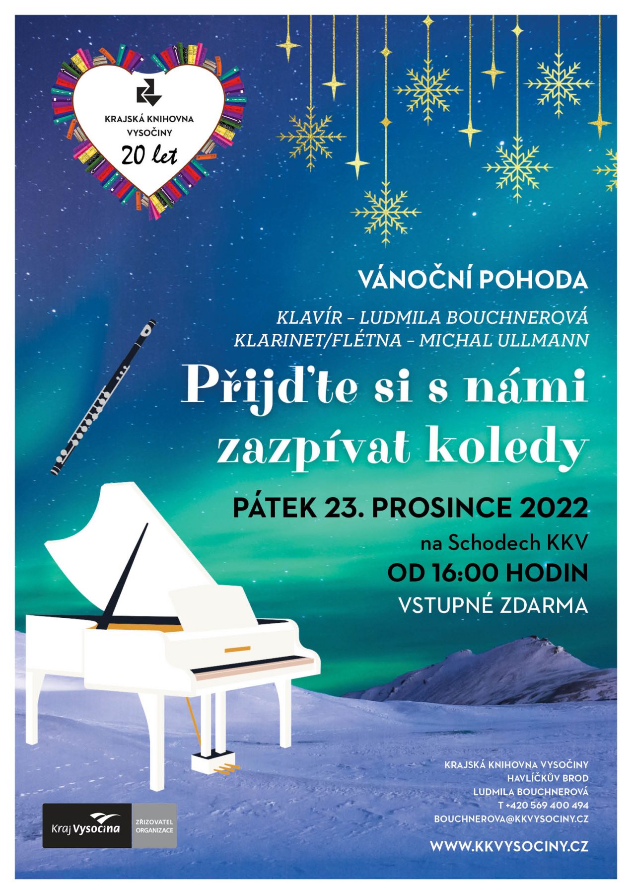 Přijďte si s námi užít vánoční pohodu při zpěvu, hraní koled a poslechu krásných tónů piana a klarinetu.