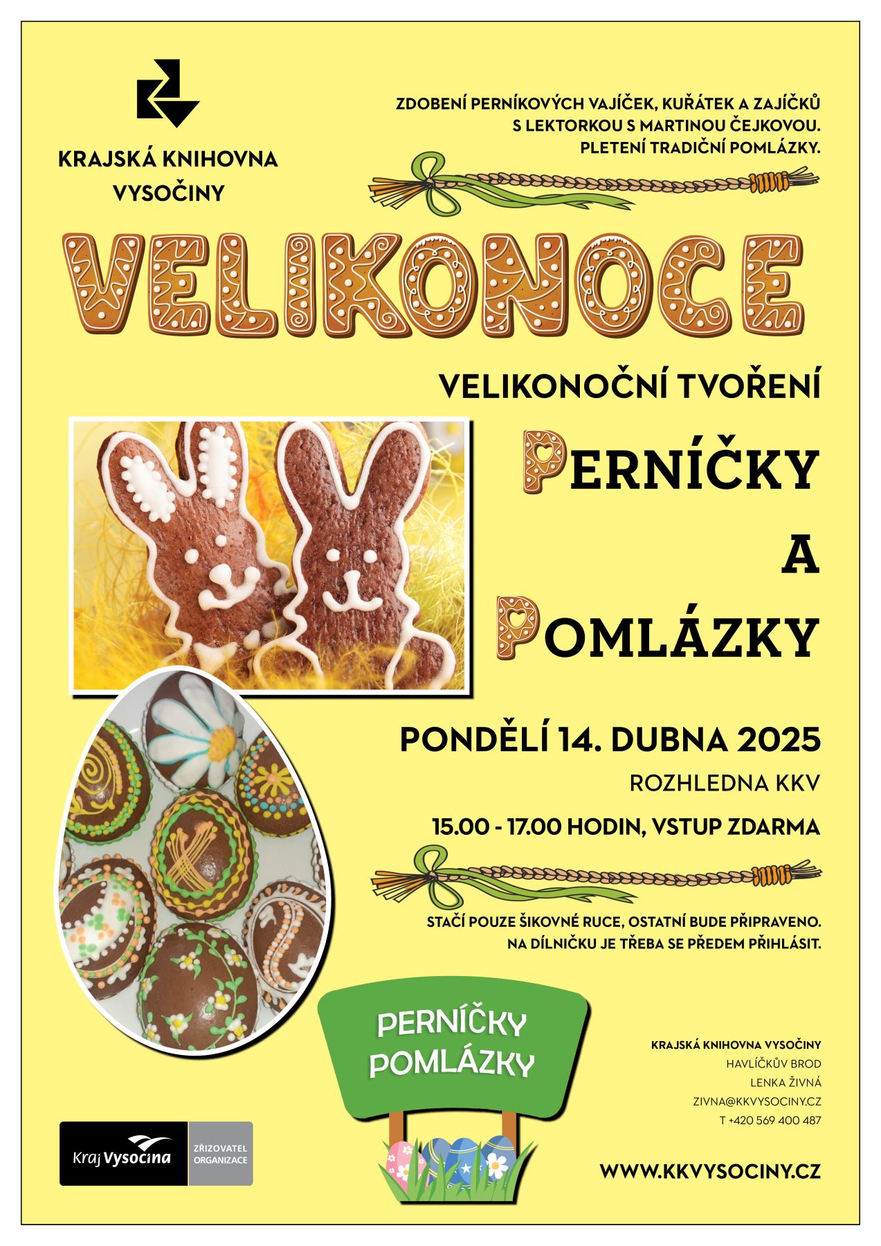 Společně si nazdobíme voňavá perníková vajíčka, kuřátka a zajíčky a také se naučíme plést tradiční pomlázky.