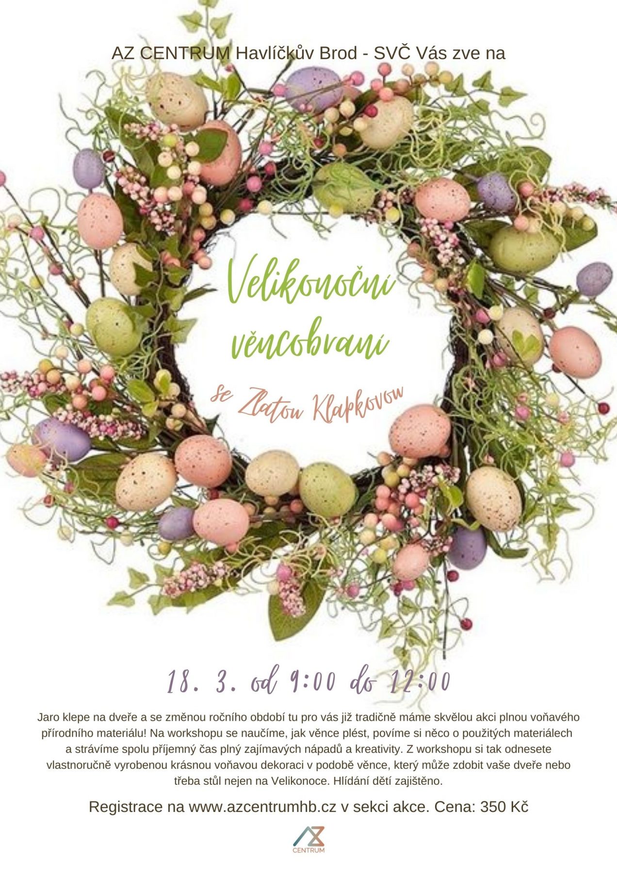Jaro klepe na dveře a se změnou ročního období tu pro vás již tradičně máme skvělou akci plnou voňavého přírodního materiálu! Tentokrát se společně sejdeme k příležitosti pletení jarních a velikonočních věnců, které k tomu vítání jara neodmyslitelně patří.