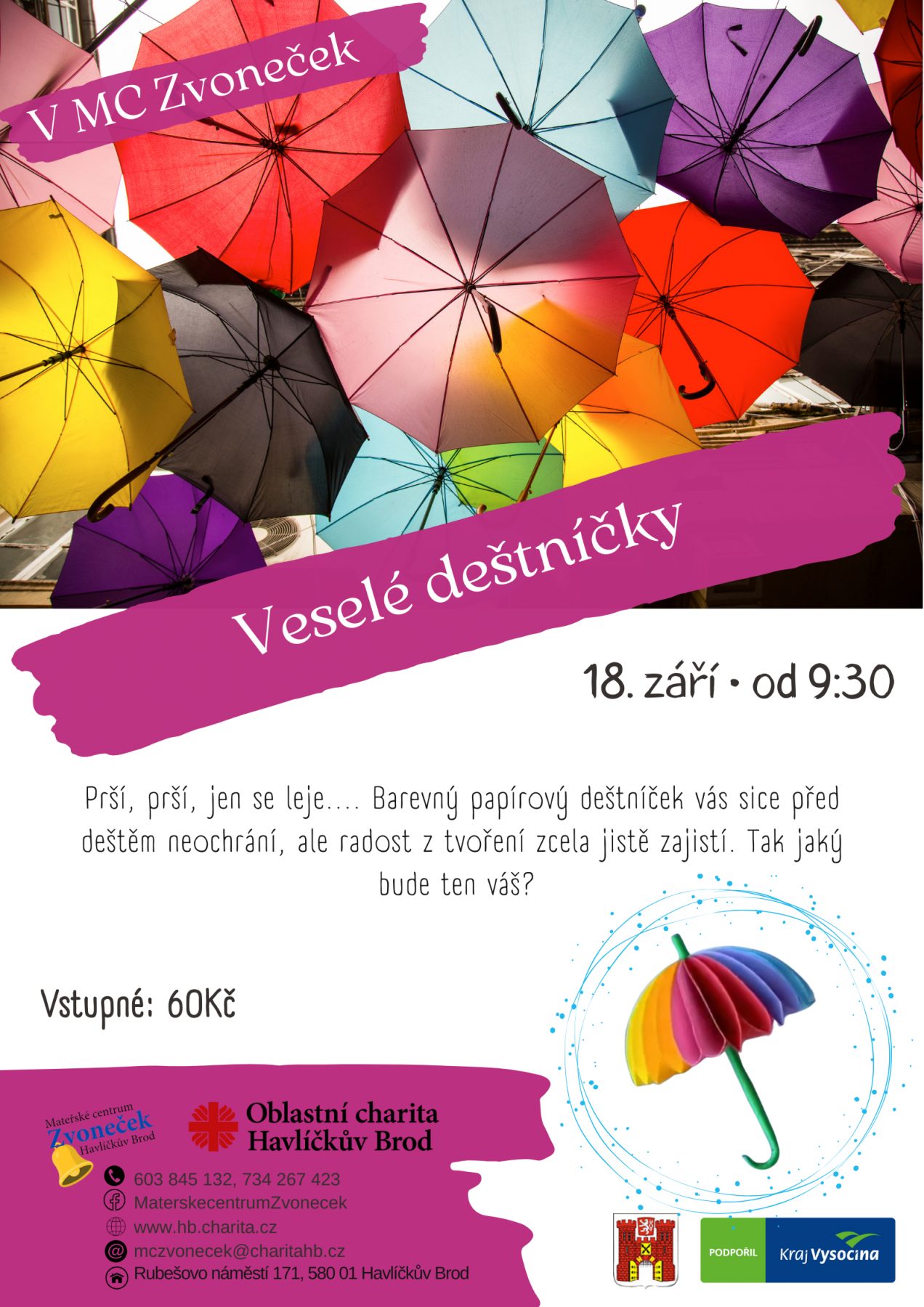 | Pořádá: | Mateřské centrum Zvoneček mczvonecek@charitahb.cz |