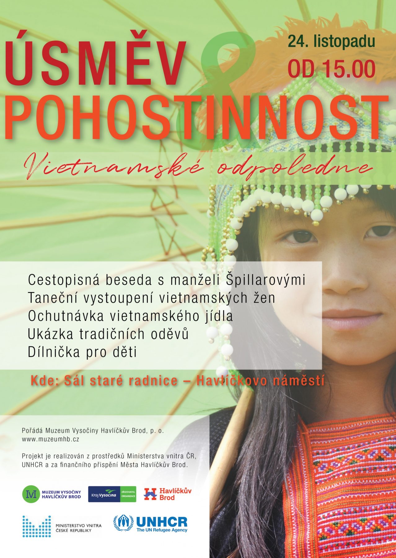 Muzeum Vysočiny Havlíčkův Brod vás zve na poslední akci ze série setkání věnovaných nejpočetněji zastoupeným menšinám v České republice. Letošní ročník zakončíme Vietnamským odpolednem, které proběhne v neděli 24. listopadu od 15 hodin v sále Staré radnice. Společně se opět ponoříme do bohatých tradic a malebných míst této zajímavé země.