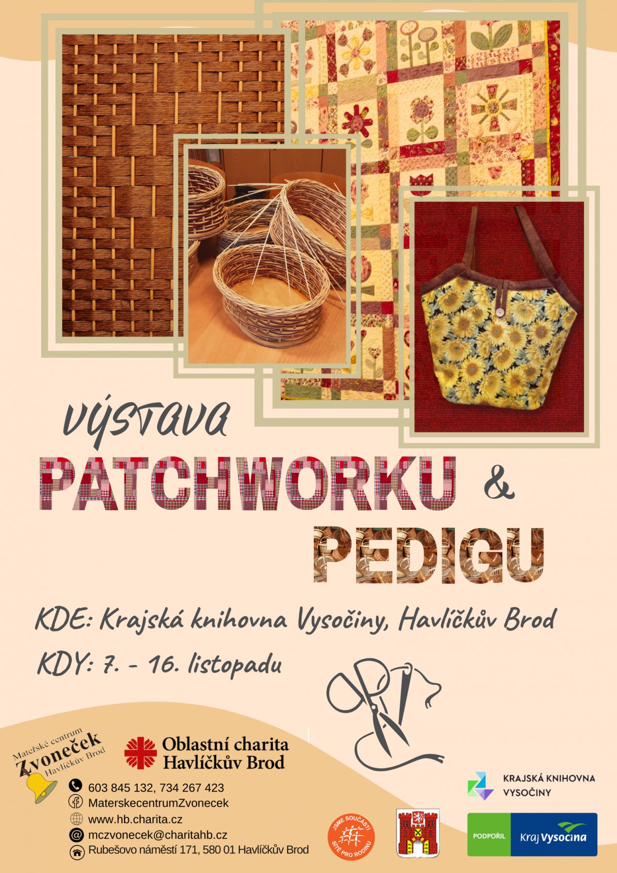 Výstava ručně šitých a pletených výrobků, které vznikly na kurzech pořádaných Mateřským centrem Zvoneček.
