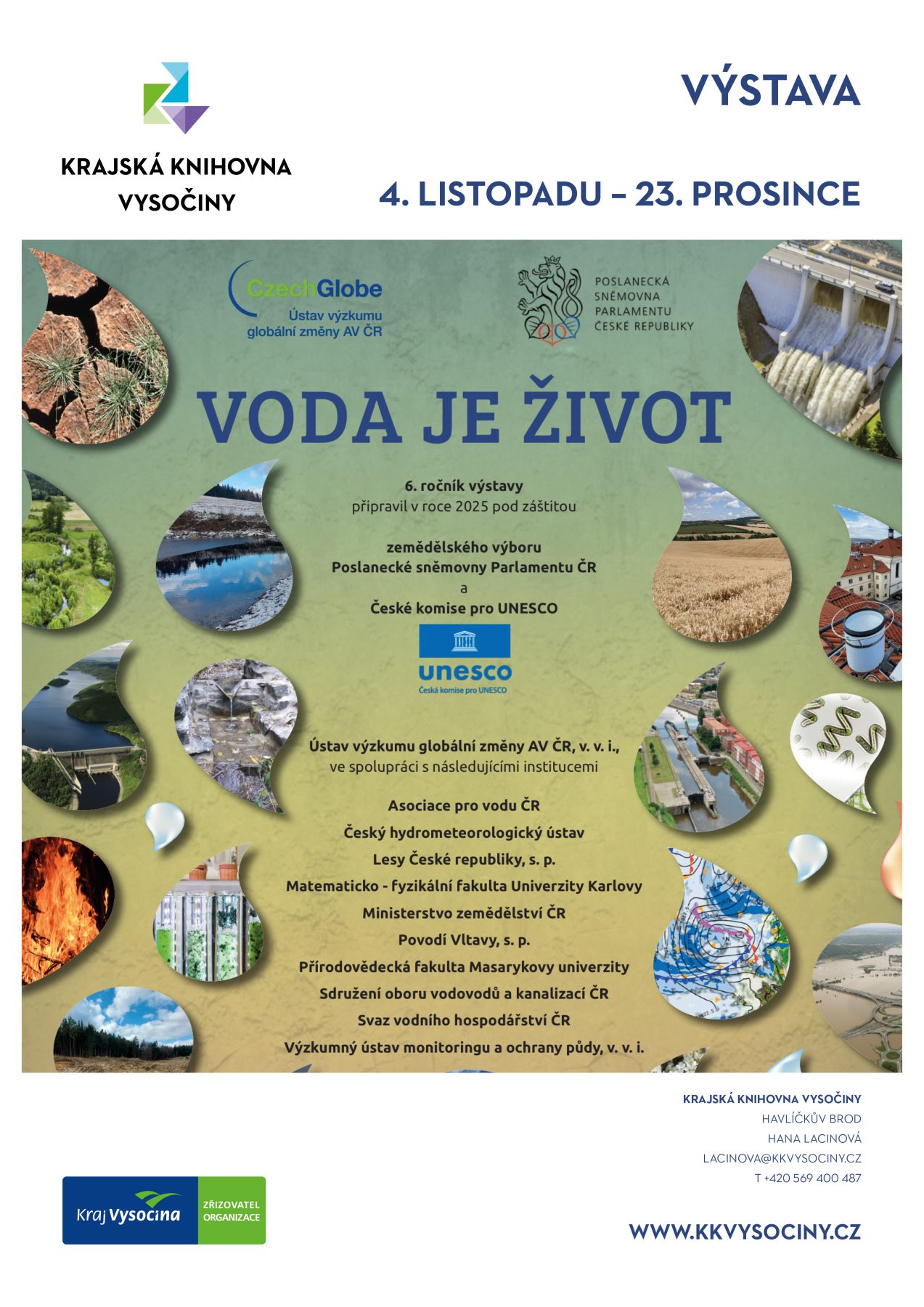 Šestý ročník výstavy, která je tematicky zaměřena na klimatické změny a ubývání vody v přírodě. Na čtrnácti panelech popisuje různé aspekty vody, jako je její koloběh, zdroje, znečištění, ale i prevence povodní a revitalizace vodních toků. Výstavu připravil Ústav výzkumu globální změny AV ČR ve spolupráci s dalšími odbornými pracovišti.