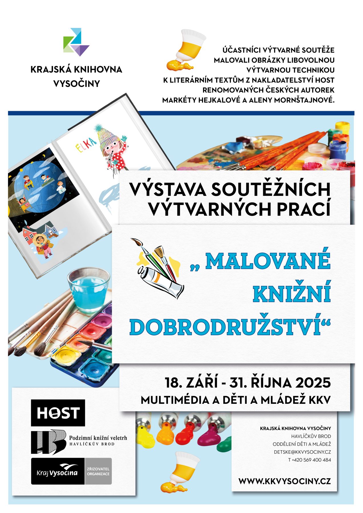 Zveme všechny děti a jejich rodiče, prarodiče na výstavu Malované knižní dobrodružství, která představuje výtvarné práce přihlášené do soutěže.