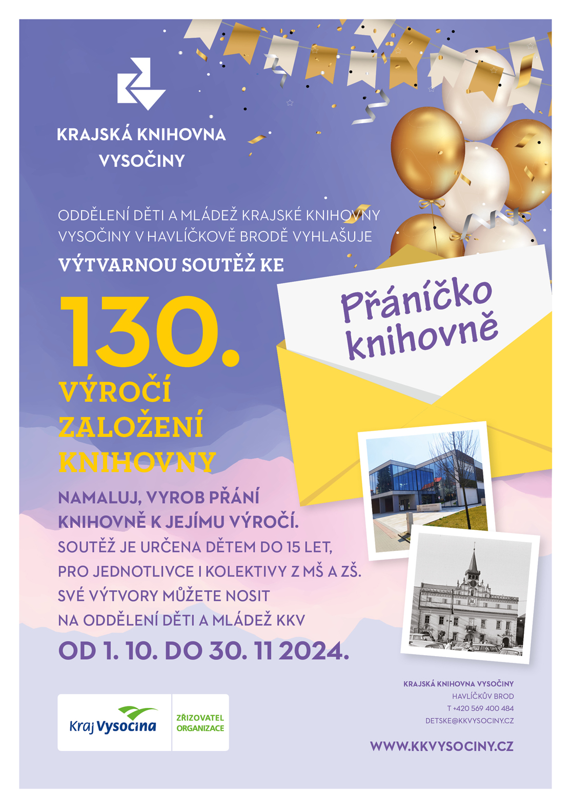 Oddělení Děti a mládež Krajské knihovny Vysočiny v Havlíčkově Brodě vyhlašuje výtvarnou soutěž ke 130. výročí založení knihovny.
