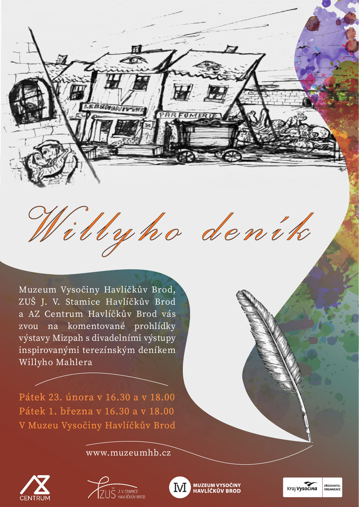Komentované prohlídky výstavy Mizpah s divadelními výstupy inspirovanými terezínským deníkem Willyho Mahlera, uvede Muzeum Vysočiny Havlíčkův Brod ve spolupráci se ZUŠ J.V. Stamice Havlíčkův Brod a AZ Centrem Havlíčkův Brod. Tyto prohlídky začínají v 16:30 a 18:00.