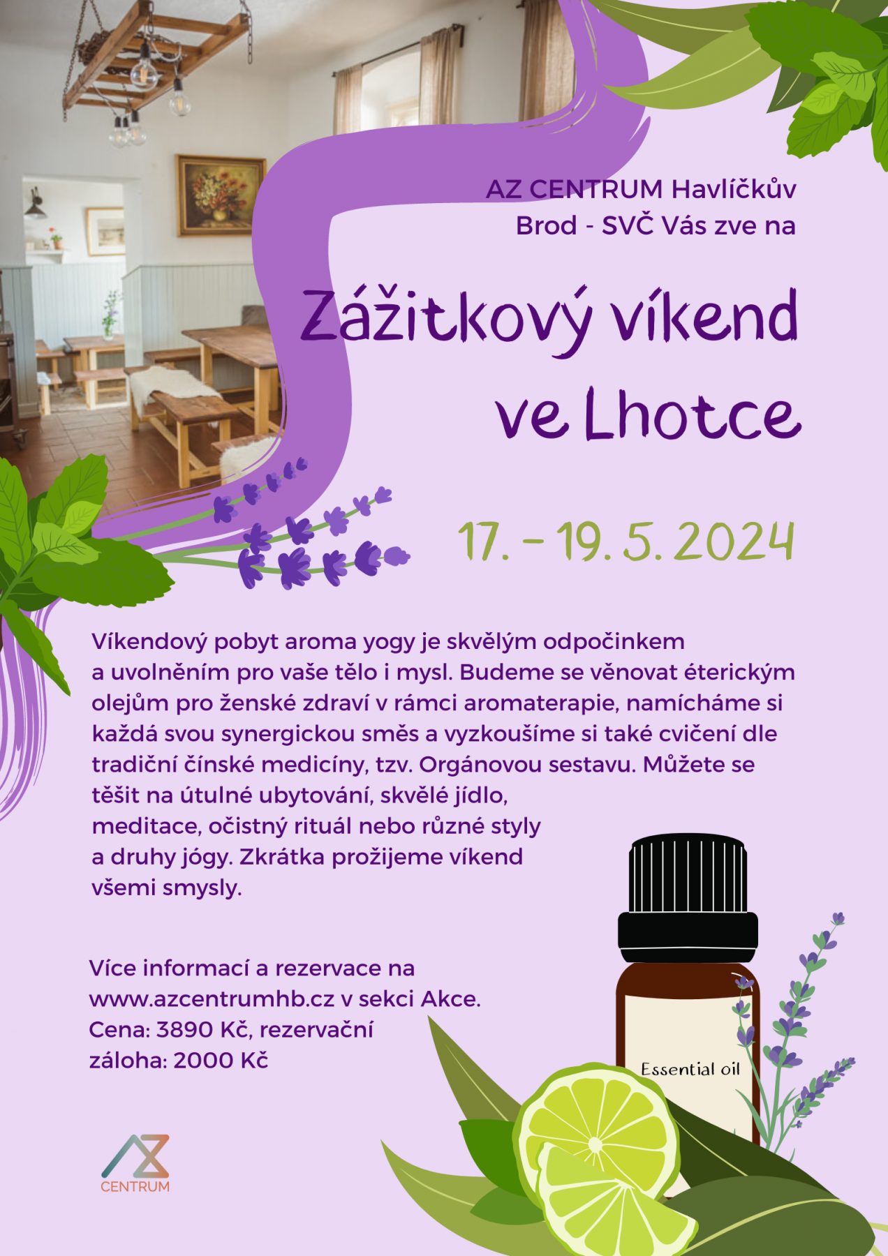 Víkendový pobyt aroma yogy ve Lhotce. Areál Lhotka se nachází na polosamotě, uprostřed nádherné a ryzí přírody na Vysočině. Ze všech stran je obklopen pouze lesy, loukami a rybníky. Užijte si čas jen sami pro sebe. Na zážitkovém pobytu si odpočinete od domácího i pracovního koloběhu, načerpáte novou energii a vrátíte se svěží. Uvolníte tělo i mysl. Těšit se můžete na útulné ubytování, skvělé jídlo a pití nebo možnost udělat si večerní oheň. Součástí areálu je jógovna s velice útulnou atmosférou.