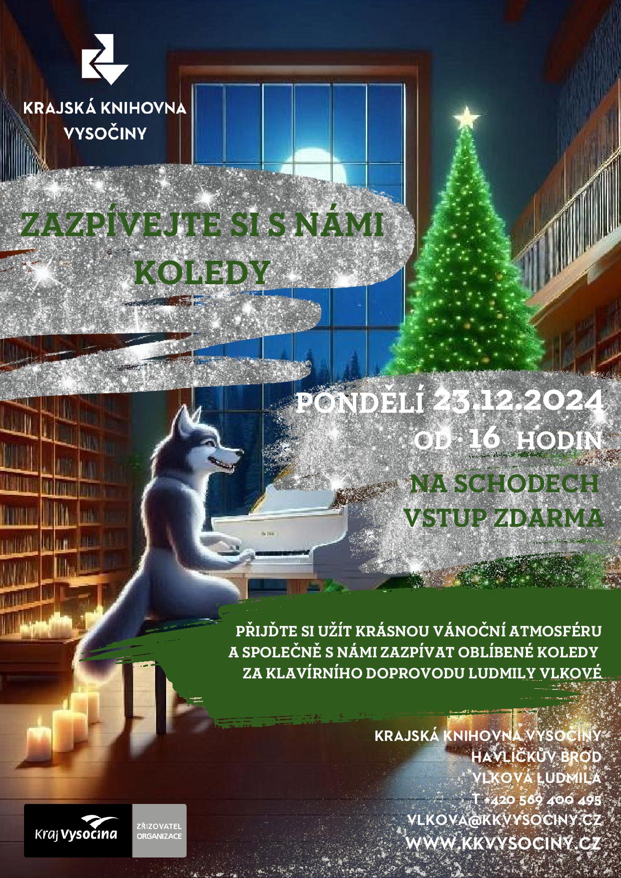 Přijďte si užít krásnou vánoční atmosféru a společně s námi si zazpívat oblíbené koledy za klavírního doprovodu Ludmily Vlkové.