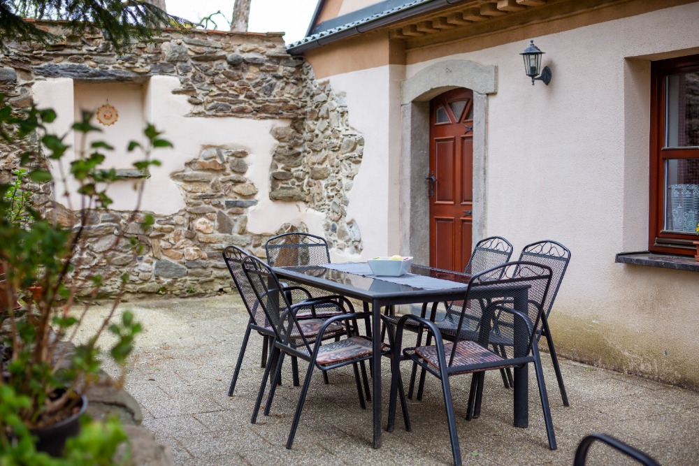 V uzavřeném dvoře naleznete i ohniště, udírnu a mnoho koutů k posezení.
